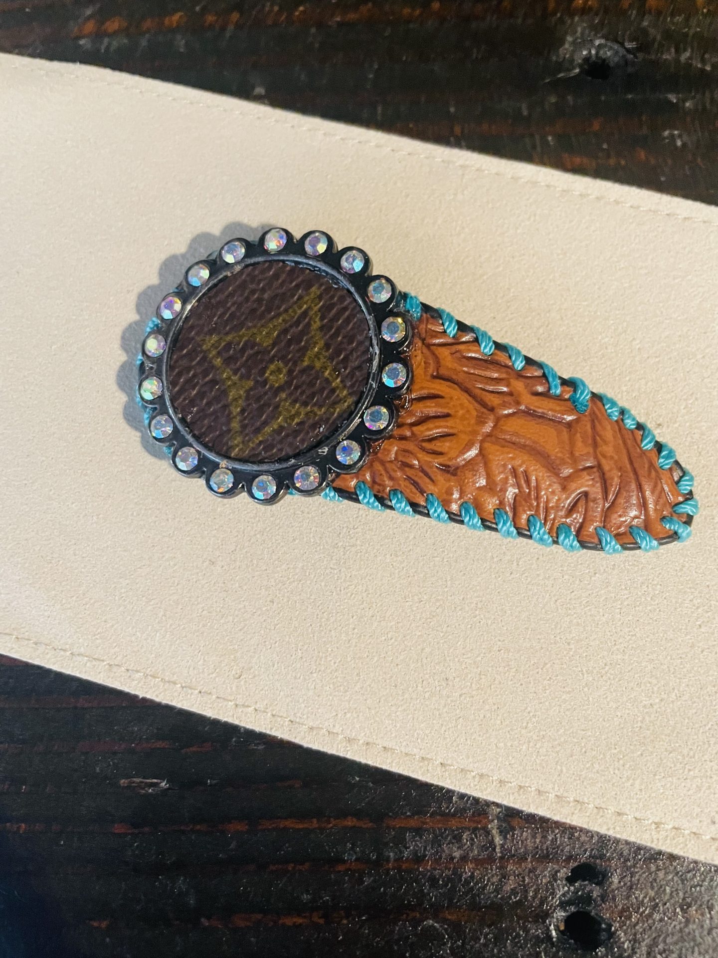 These are super cute hair clips with added upcycled LV.