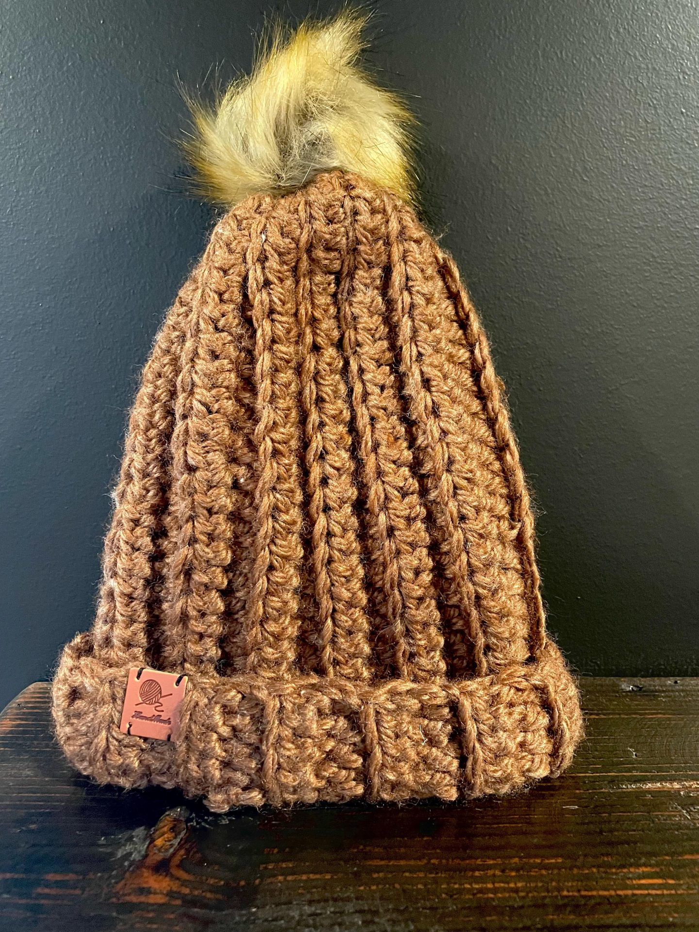 Handmade Wool Hat – Burnt Orange/ Brown Pompom