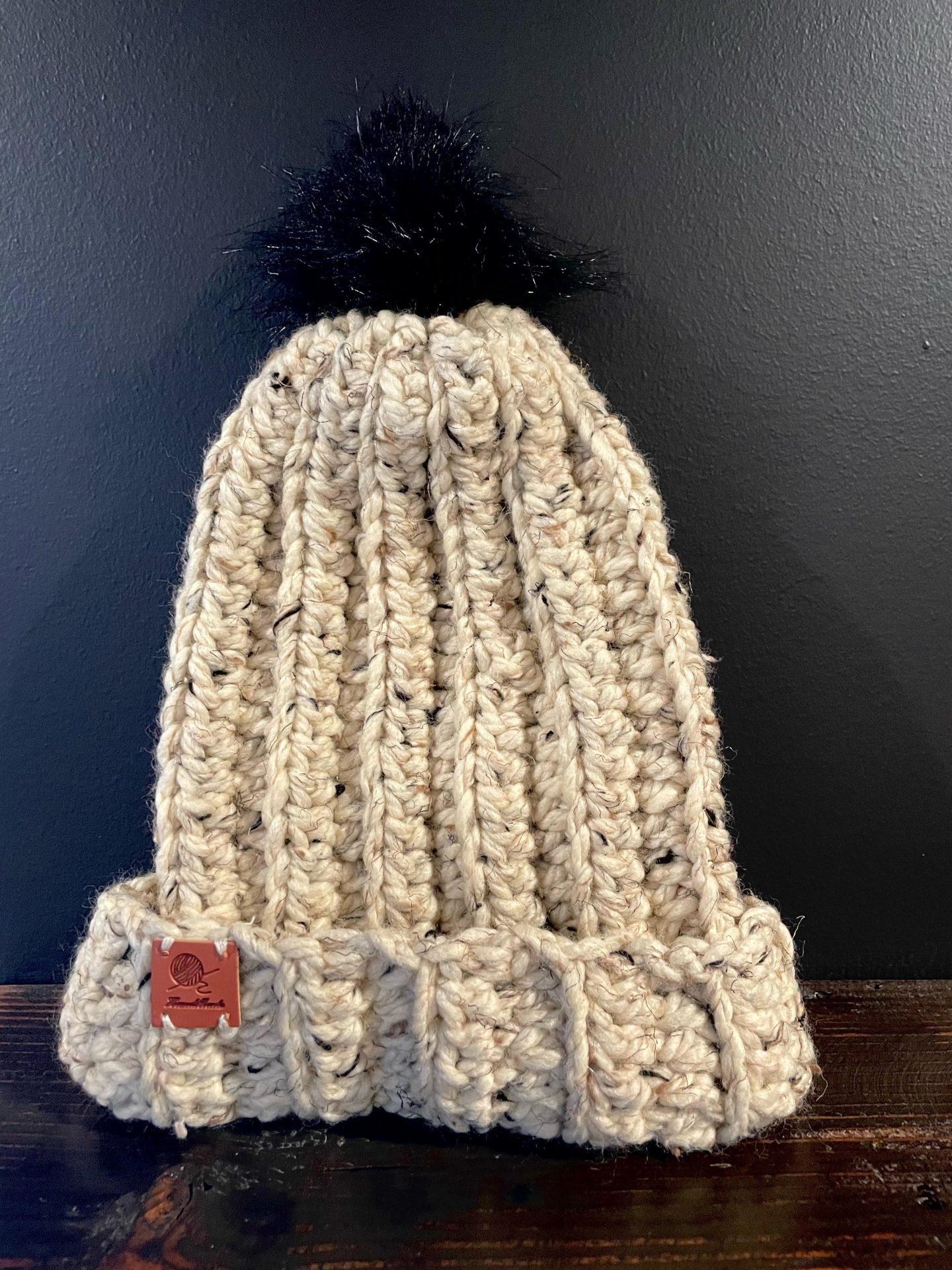 Handmade Wool Hat – Oatmeal/Black Pompom