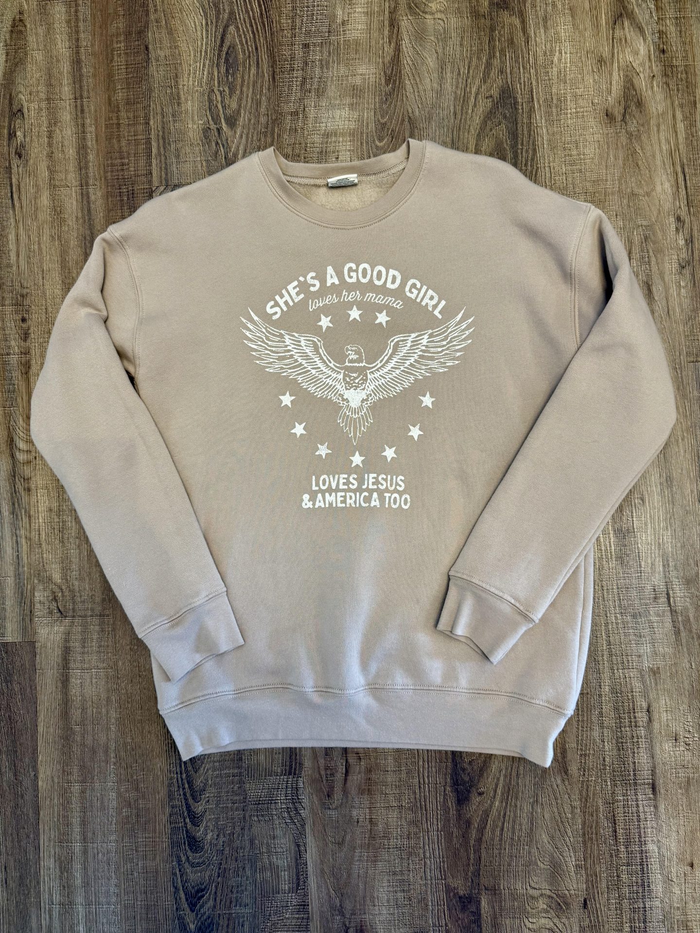 SHE’S A GOOD GIRL LOVES JESUS & AMERICA TOO PULLOVER