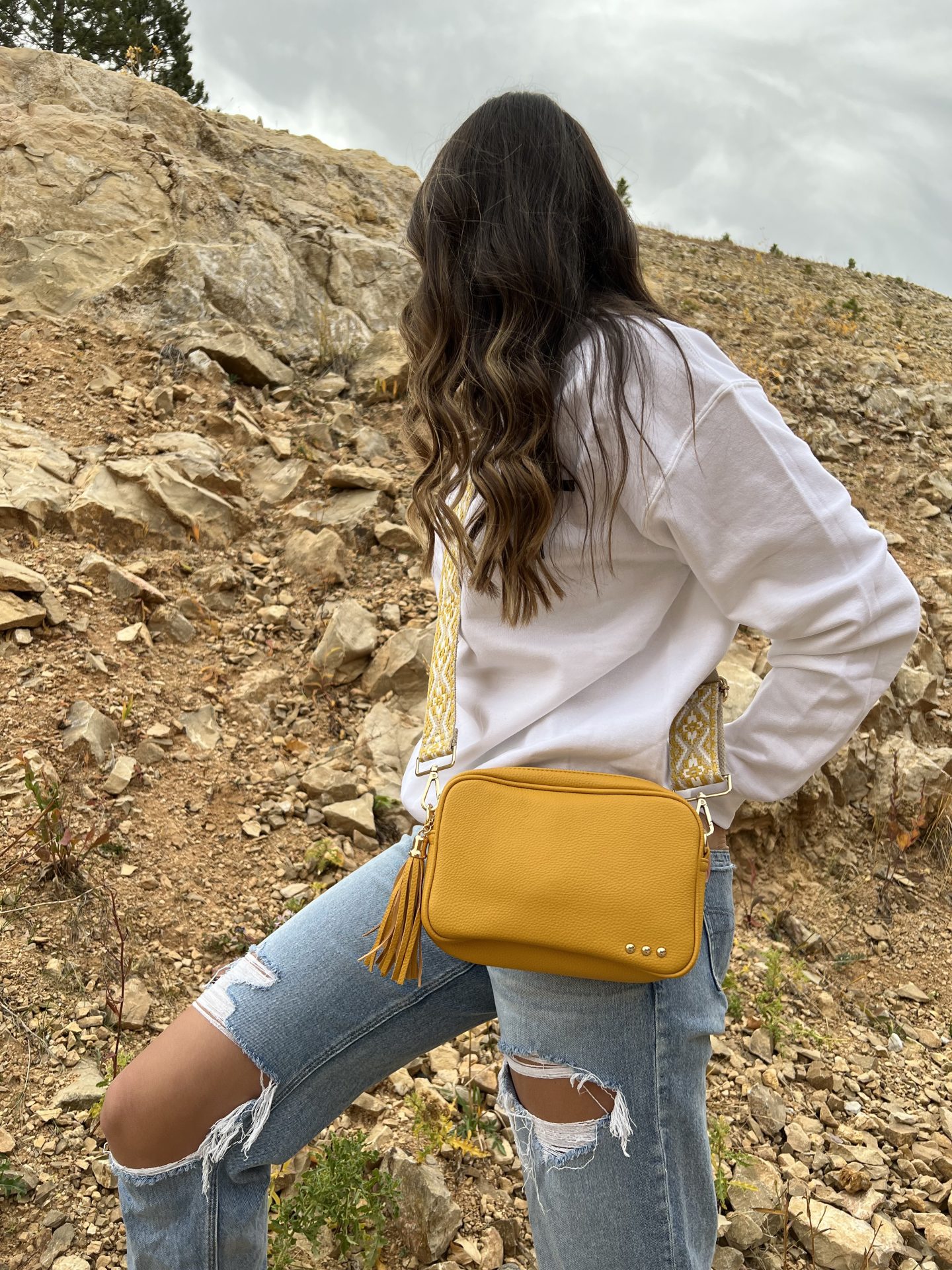 Yellow Willow Camera Crossbody Bag